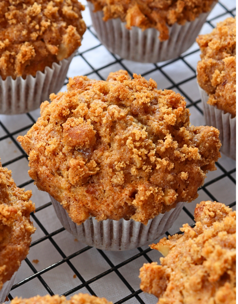 Evenly divide the batter between the prepared muffin liners, then generously sprinkle the crumble topping over the top. There’s no need to press it in.