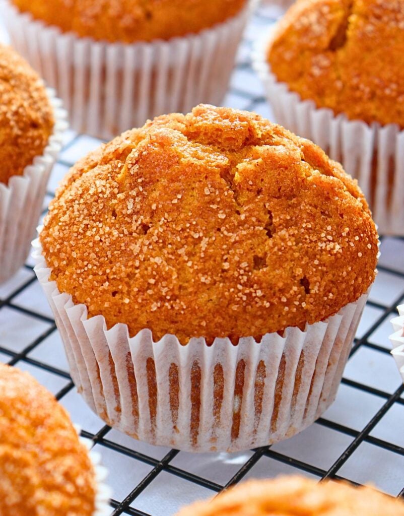These pumpkin muffins keep well in an airtight container at room temperature for up to 3 days, or in the fridge for up to 5 days—just pop them in the microwave for a few seconds to bring back that fresh-from-the-oven taste. They also freeze beautifully for up to 2 months; simply store them in storage bags and place in the freezer, then thaw at room temperature or warm before serving.